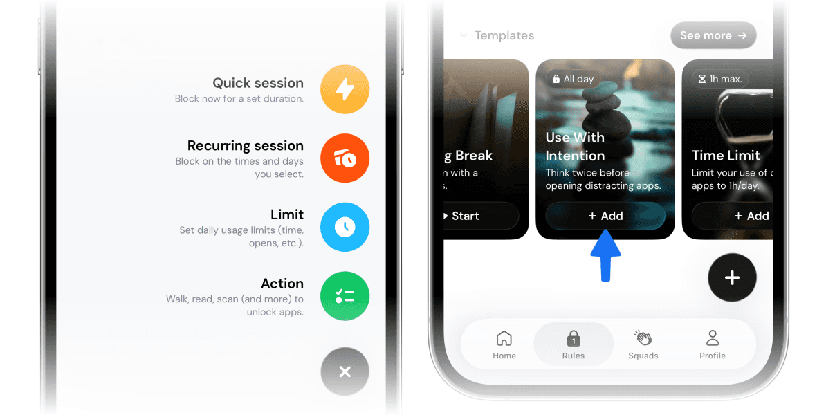 Set up a blocking rule in Jomo to gradually reduce your usage (especially by adding friction when opening social media apps) → you’ll find the full tutorial just below.