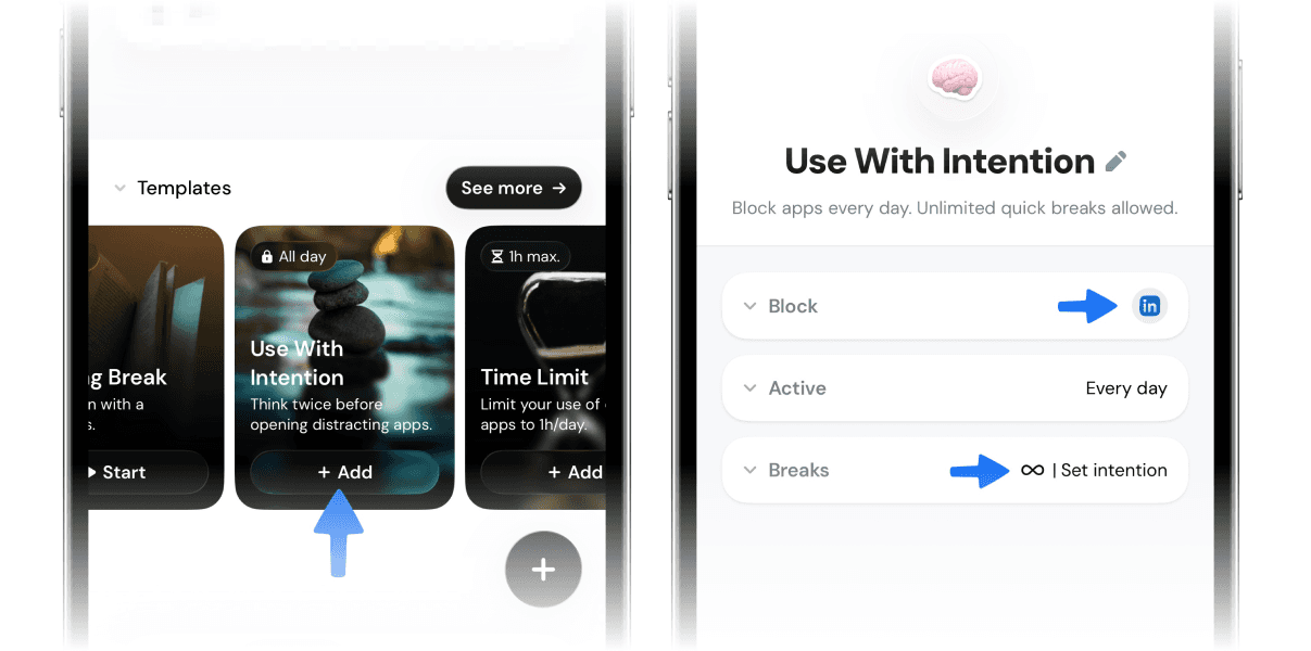 Scroll down to the “Templates” section and tap “Use With Intention”