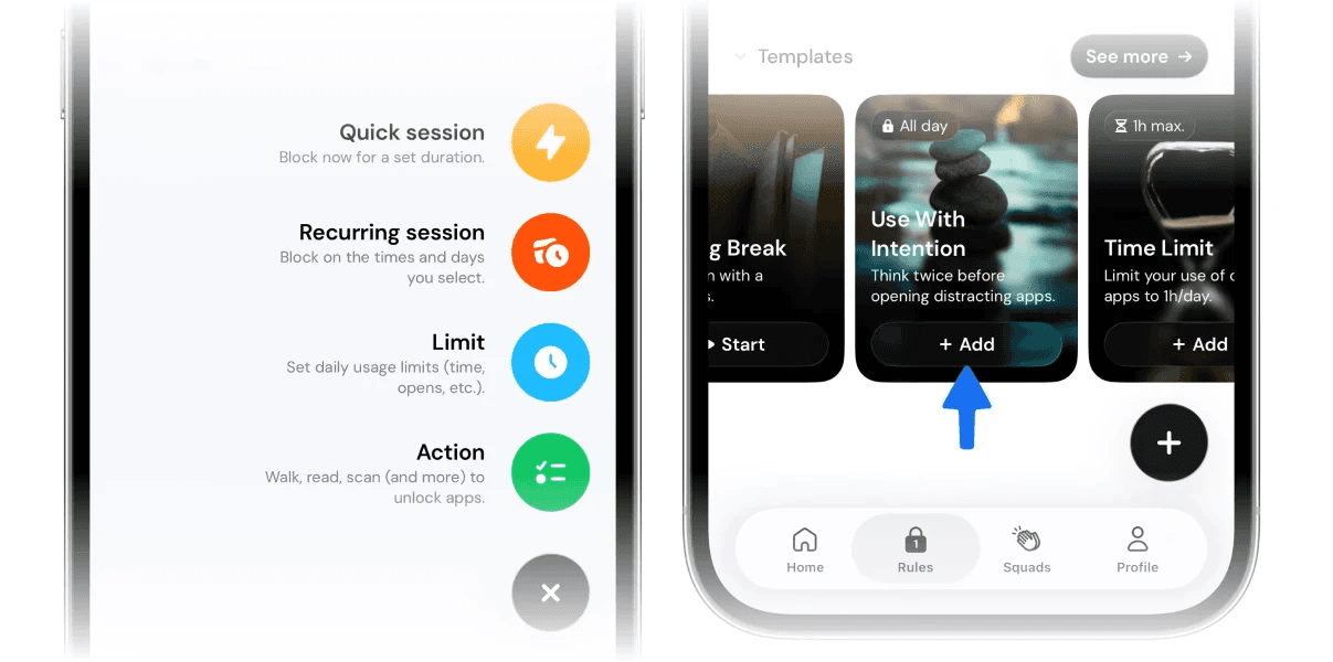 Go to Rules, then in the Templates section, tap “Use with intention.”